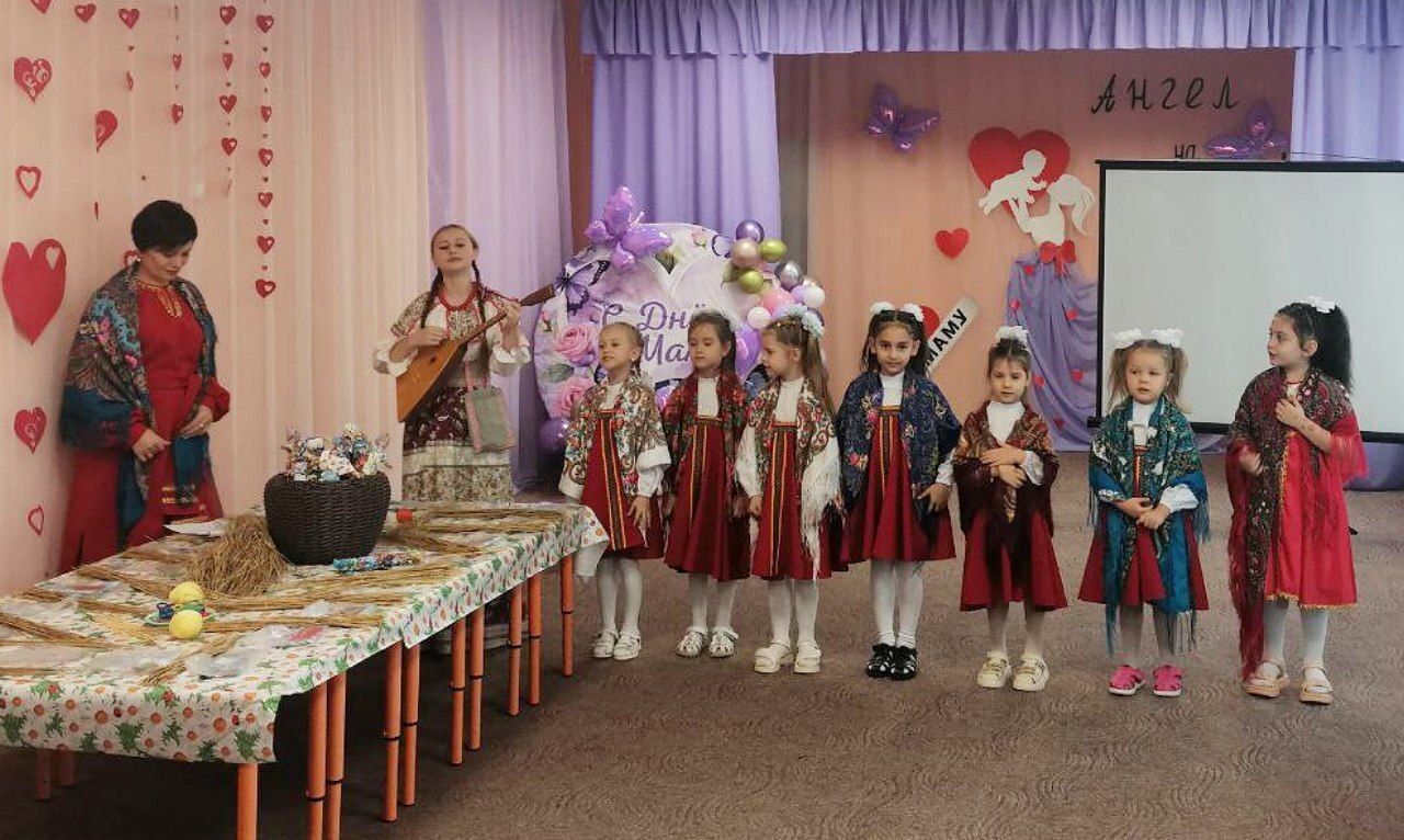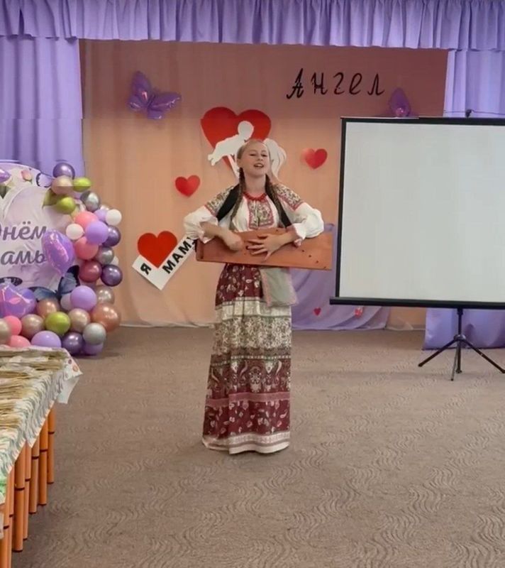 Учащаяся фольклорного отделения Левина Алена под руководством преподавателя Ревиной Т.В. аккомпанировала на балалайке ансамблю девочек задорные частушки, а также исполнила веселую песню под гусли "Я по рощице гуляла".Мамы тепло принимали артистов дружными аплодисментами.