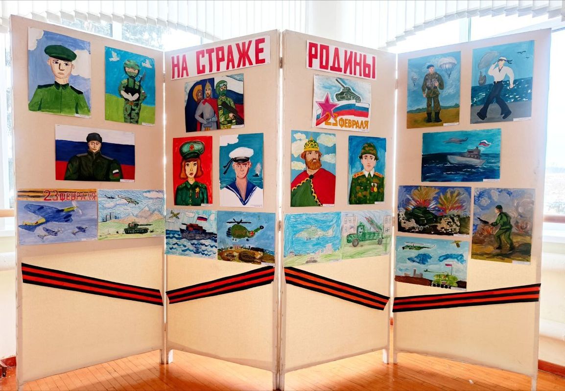 В преддверии 23 февраля ко Дню Защитника Отечества в школе состоялась выставка работ учащихся художественного отделения.