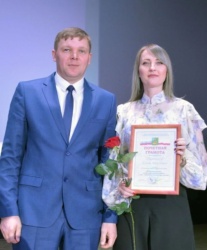 Почетная грамота председателя Собрания Базарно-Карабулакского района за добросовестный труд и образцовое исполнение обязанностей вручена преподавателю художественного отделения Н. В. Самошкиной.